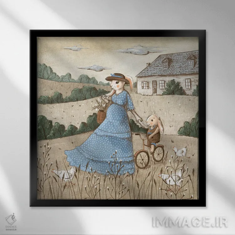 براساس پالت گرم اثر، قاب بلوط روشن (چوبی) پیشنهاد اول است و استخوانی ملایم مکمل. برای سفارشهای پروژهای با ابعاد و قابهای اختصاصی با ایماژ در تماس باشید.