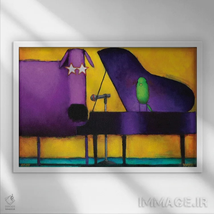 تابلو دکوراتیو سگ پیانویی پرزرق و برق اثر دنیل پاتریک کس لر