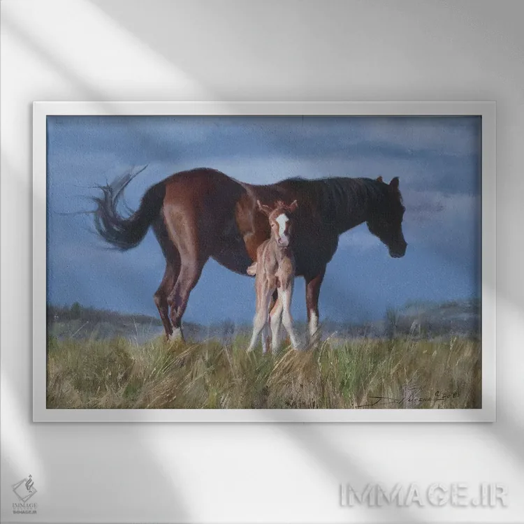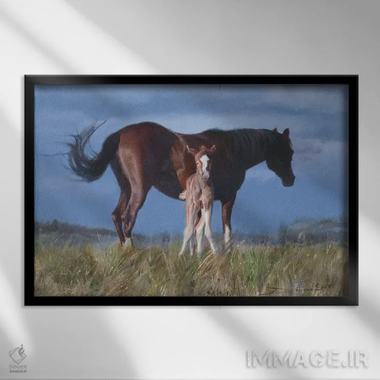 براساس پالت ترکیبی اثر، قاب بلوط روشن (چوبی) پیشنهاد اول است و استخوانی ملایم مکمل. برای سفارشهای پروژهای با ابعاد و قابهای اختصاصی با ایماژ در تماس باشید.