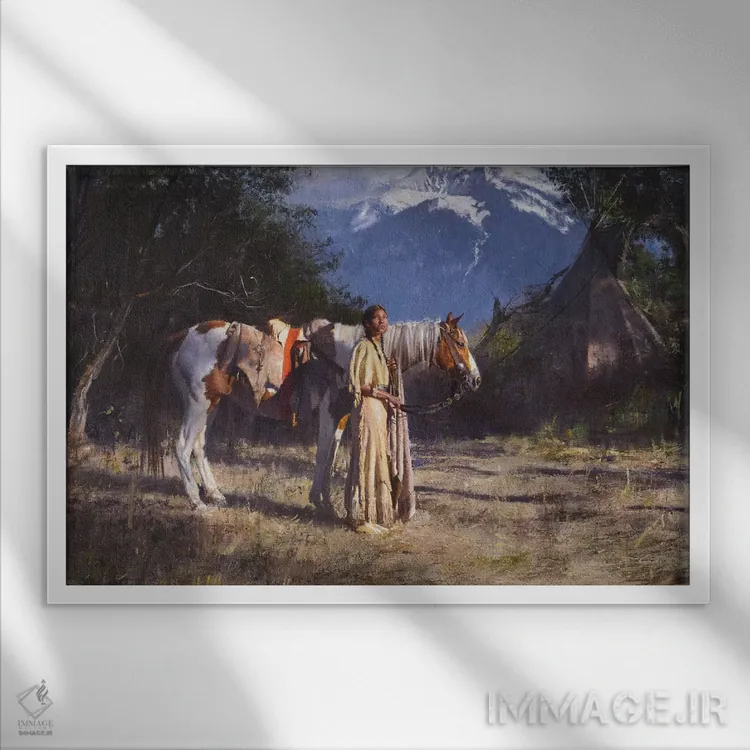 براساس پالت ترکیبی اثر، قاب بلوط روشن (چوبی) پیشنهاد اول است و استخوانی ملایم مکمل. برای سفارشهای پروژهای با ابعاد و قابهای اختصاصی با ایماژ در تماس باشید.