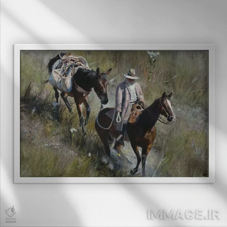 اگر به آثار حیوانات علاقه دارید، «سراشیبی پوشیده از چمن» اثرِ «دیوید ادوارد کوسرا» به فضا، گرمیِ ملایم اضافه میکند، برای دیوار کنار میز کار گزینهٔ مناسبیست. به دیوار، قصه میدهد—اما قصهای آرام و شیک.