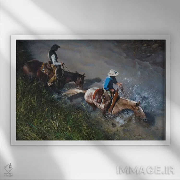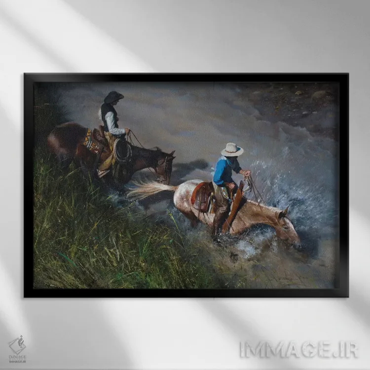 براساس پالت ترکیبی اثر، قاب بلوط روشن (چوبی) پیشنهاد اول است و استخوانی ملایم مکمل. برای سفارشهای پروژهای با ابعاد و قابهای اختصاصی با ایماژ در تماس باشید.