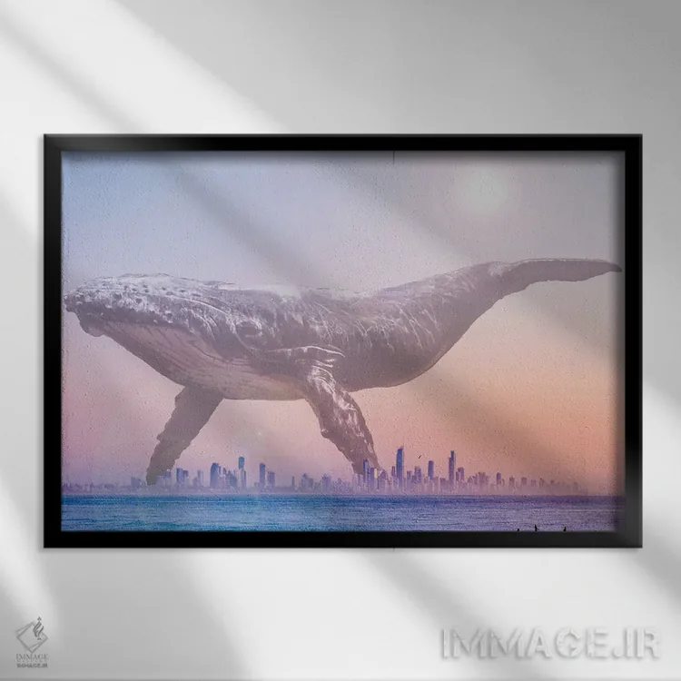 تابلو نهنگ عظیم بر فراز شهر ساحلی مهآلود اثر دیوید لوبلاو