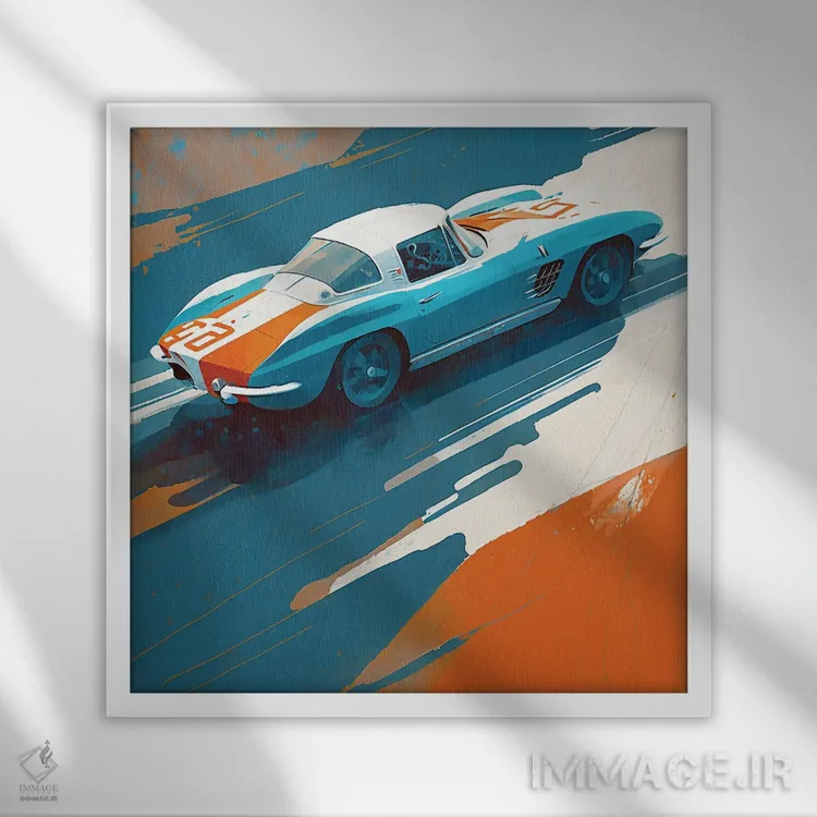 «شورلت کوروت مسابقهای» اثرِ «دیوید لوبلاو» یک لهجهی مدرن برای ترکیبهای خاکستری/سفید و نور سرد است.