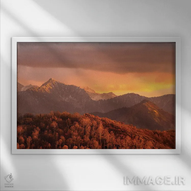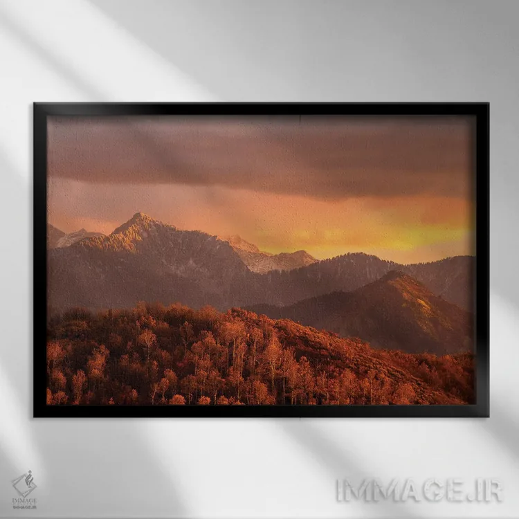 براساس پالت گرم اثر، قاب تیک گرم (چوبی) پیشنهاد اول است و مشکی مات (فریم متوسط) مکمل. برای سفارشهای پروژهای با ابعاد و قابهای اختصاصی با ایماژ در تماس باشید.