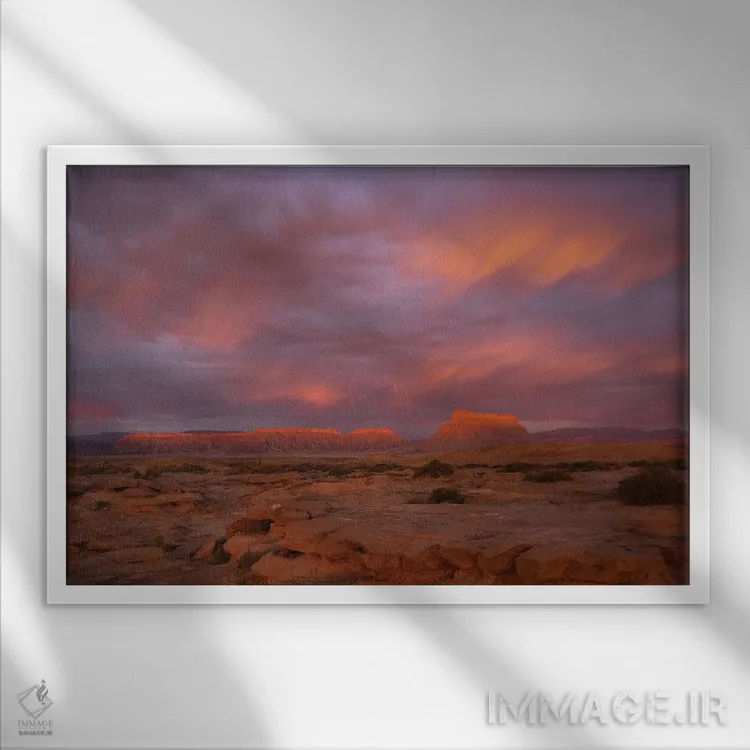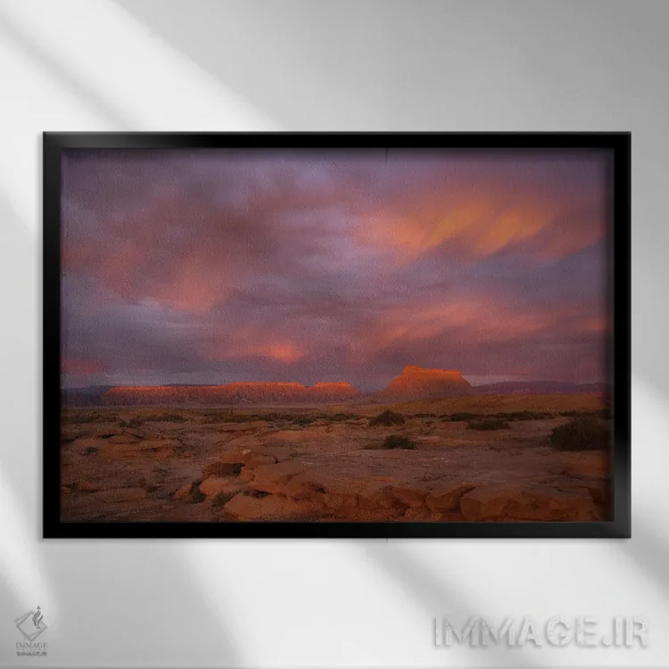 براساس پالت گرم اثر، قاب تیک گرم (چوبی) پیشنهاد اول است و مشکی مات (فریم متوسط) مکمل. برای سفارشهای پروژهای با ابعاد و قابهای اختصاصی با ایماژ در تماس باشید.