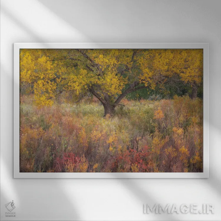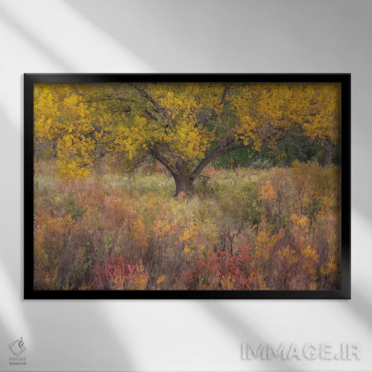 براساس پالت گرم اثر، قاب تیک گرم (چوبی) پیشنهاد اول است و مشکی مات (فریم متوسط) مکمل. برای سفارشهای پروژهای با ابعاد و قابهای اختصاصی با ایماژ در تماس باشید.