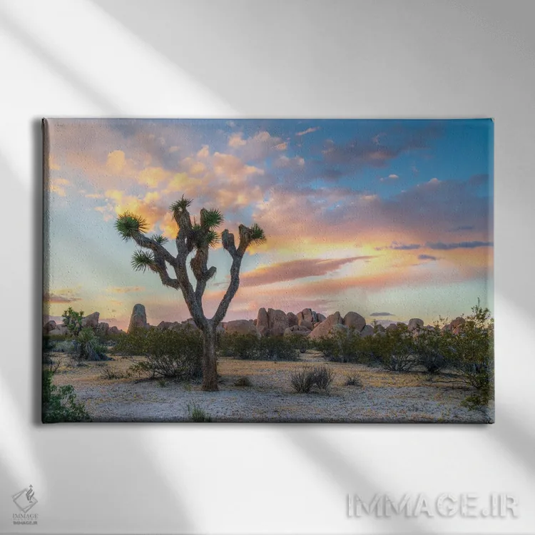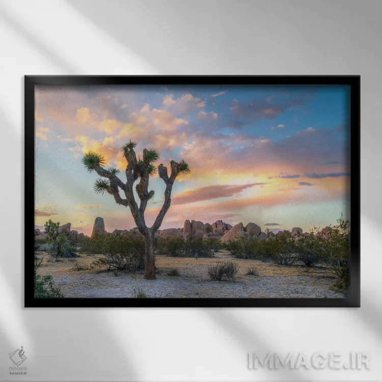 برای خانههایی که به زیباییِ آرام علاقه دارند، «غروب درخت جاشوا» اثرِ «داستین لِفور» دیوار را از تزئین به «حضور» تبدیل میکند؛ برای دکورهای کلاسیک با چوب و پارچه پیشنهاد میشود. یک انتخاب خوشسلیقه است که با گذر زمان هم تازه میماند.