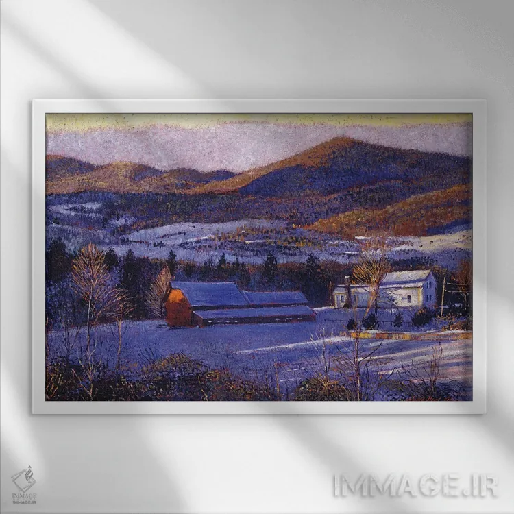 «آبی زمستانی اوهایو» اثرِ «دیوید لوید گلوور» ترکیببندی متعادل دارد و به دیوار وقار میدهد؛ بدون اینکه فضا را سنگین کند.