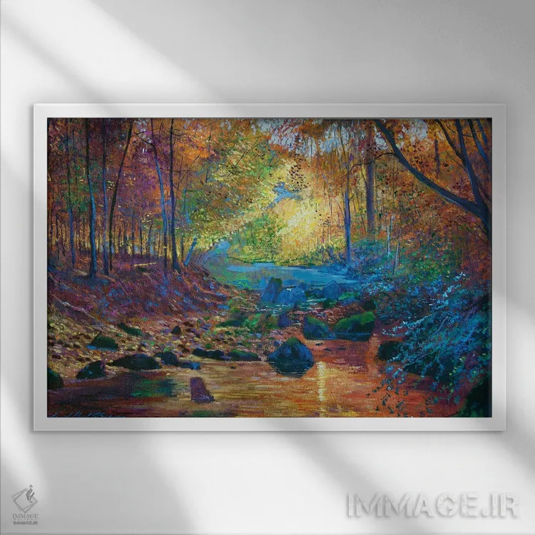 براساس پالت ترکیبی اثر، قاب تیک گرم (چوبی) پیشنهاد اول است و مشکی مات (فریم متوسط) مکمل. برای سفارشهای پروژهای با ابعاد و قابهای اختصاصی با ایماژ در تماس باشید.