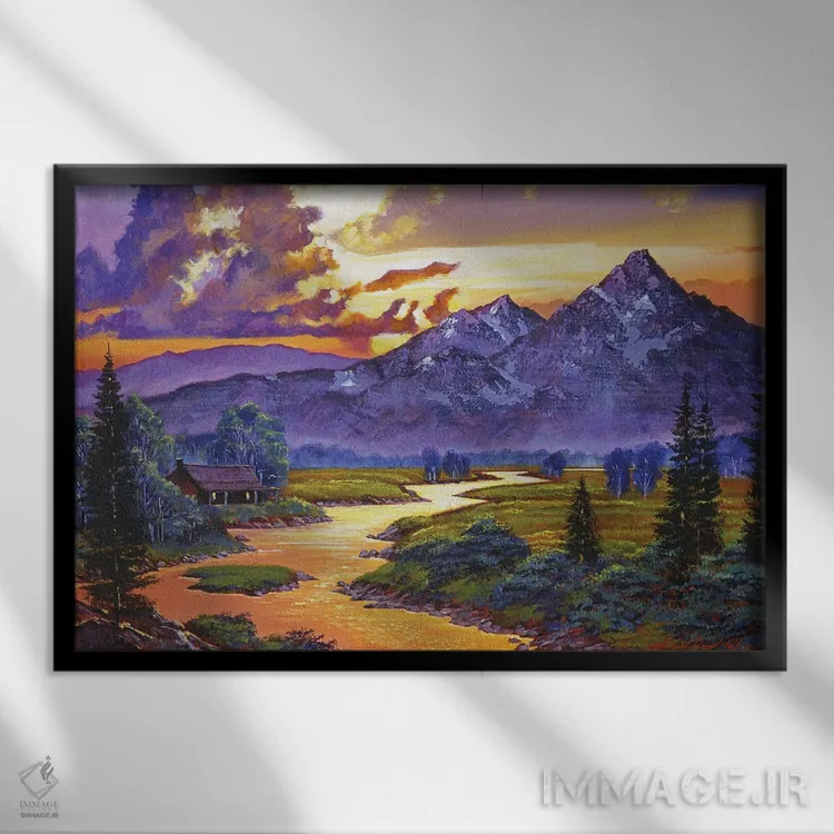 «کلبهٔ کنار رودخانه» اثرِ «دیوید لوید گلوور» میتواند حس نظم و استحکام به فضا بدهد؛ برای اتاق جلسات پیشنهاد شود. جزئیاتش از نزدیک هم خواناست و خوشپرداخت.