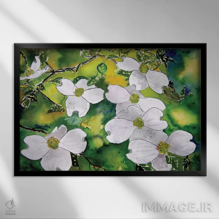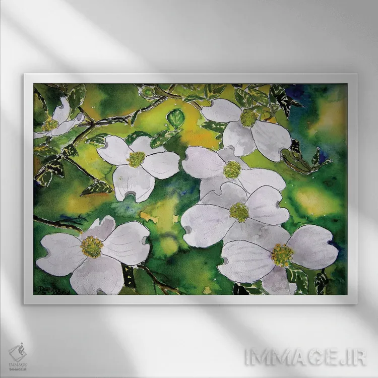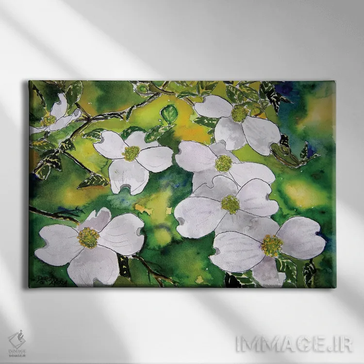 در «گلهای درخت داگوود» اثرِ «درک مککری»، عناصر گیاهی نقش اصلی دارند؛ مناسب برای فضاهایی که دنبال آرامش و لطافت پُرانرژی.
