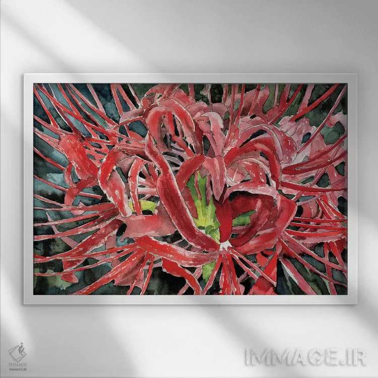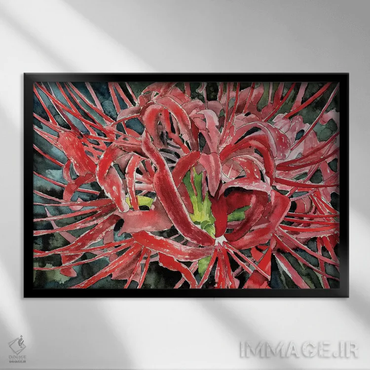 این اثر با عنوان «گل لیلی عنکبوتی قرمز» اثرِ «درک مککری» برای دیوارهای ساده، یک لطافتِ دقیق میسازد؛ برای فضاهای بوهمی انتخابی خوشسلیقه است. فضا را شلوغ نمیکند؛ فقط لطیفترش میکند.