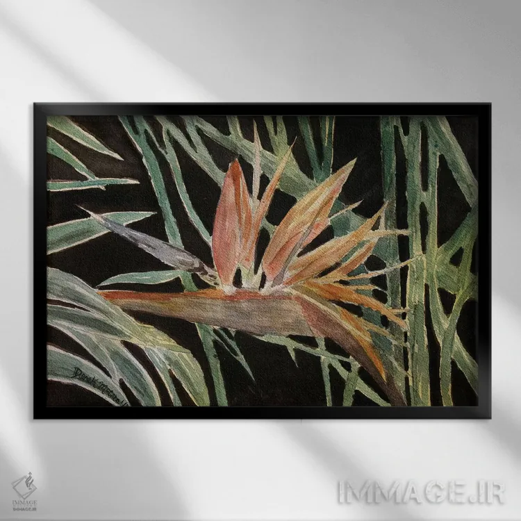 اگر دوست دارید دیوار روشنتر و آرامتر دیده شود، «گل پرندهٔ بهشتی» اثرِ «درک مککری» فضا را نرمتر و مهماننوازتر میکند، برای نشیمنهای روشن گزینهٔ مناسبیست. جزئیاتش از نزدیک هم ارزش تماشا دارد.