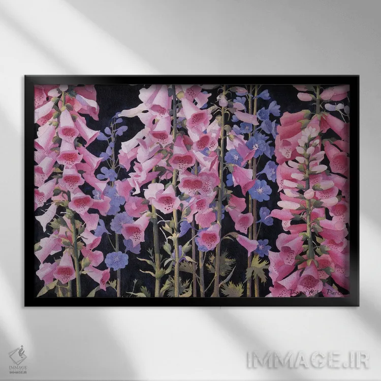 تابلو در میان گل انگشتانه اثر دیانا میلر-پیرس - نمای قاب‌دار مشکی
