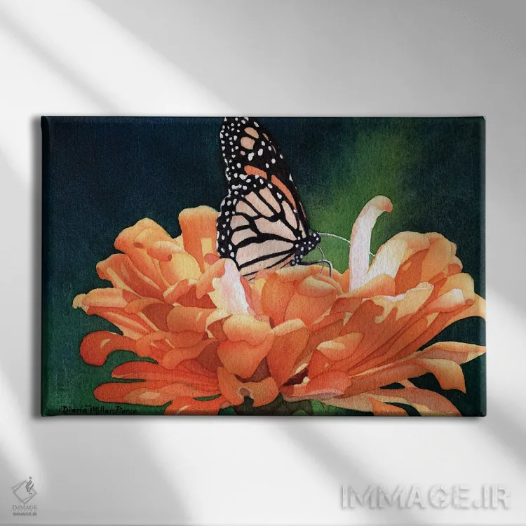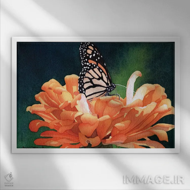 برای فضاهایی که به لطافت نیاز دارند، «جواهرنشان—پروانهٔ سلطنتی» اثرِ «دیانا میلر—پیرس» فضا را نرمتر و مهماننوازتر میکند؛ برای فضای غذاخوری انتخابی خوشسلیقه است. با قاب روشن یا چوبی، حس طبیعیتری پیدا میکند.