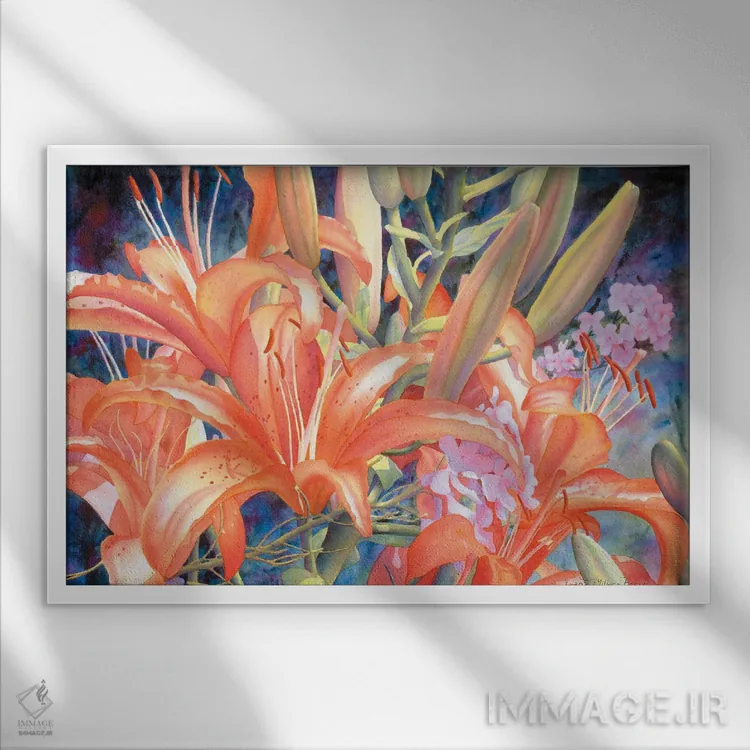 براساس پالت ترکیبی اثر، قاب تیک گرم (چوبی) پیشنهاد اول است و مشکی مات (فریم متوسط) مکمل. برای سفارشهای پروژهای با ابعاد و قابهای اختصاصی با ایماژ در تماس باشید.