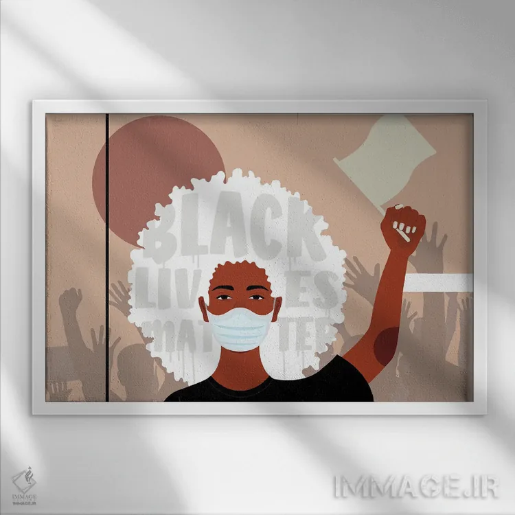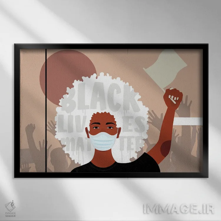 تابلو اعتراض یک اثر دومونیک براون - نمای قاب‌دار مشکی