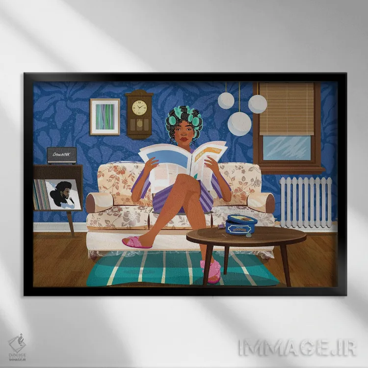 تابلو پلاستیک روی مبل اثر دومونیک براون - نمای قاب‌دار مشکی