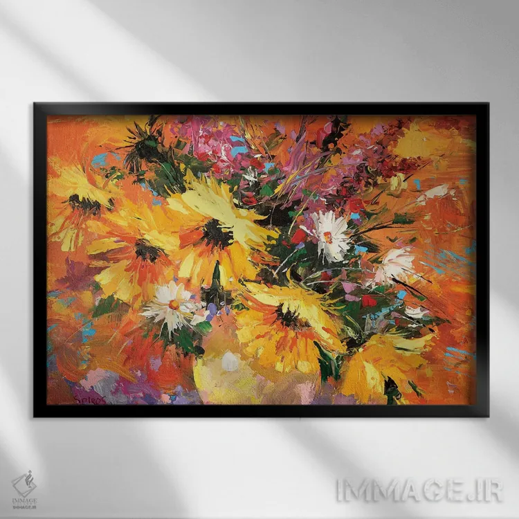 برای دیواری که میخواهید نرمتر دیده شود، «آفتابگردانها» اثرِ «دمیتری اسپیروس» حس طراوت را بدون شلوغی وارد اتاق میکند؛ برای کافهها و فضاهای آرام انتخابی خوشسلیقه است. در کنار گیاهان آپارتمانی، هماهنگتر هم میشود.