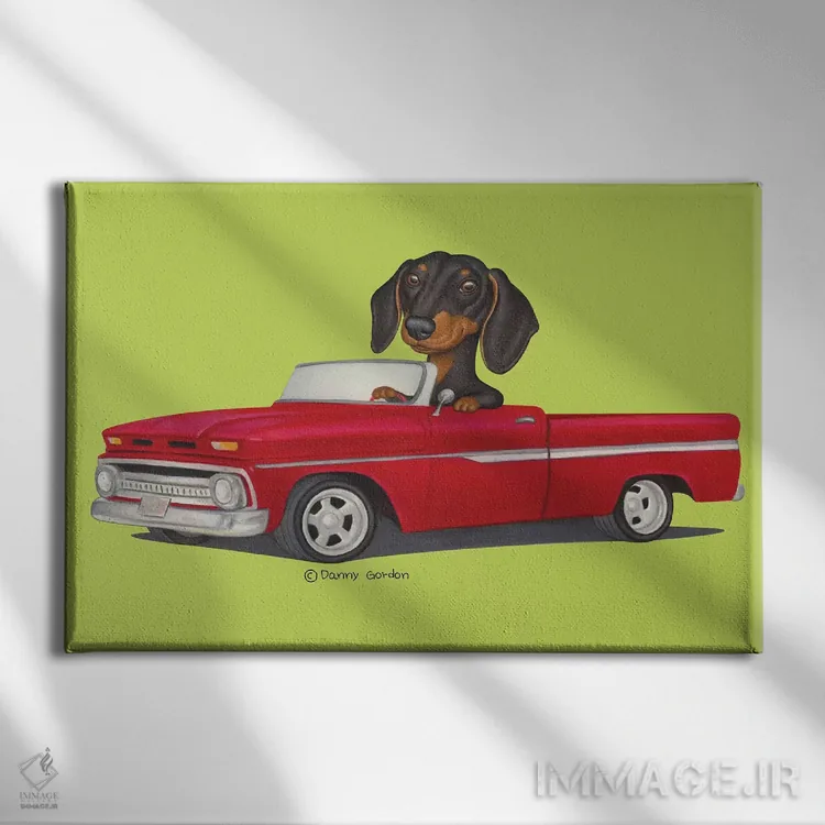 تابلو داشهوند با کامیون قرمز و لیمویی اثر دنی گوردون