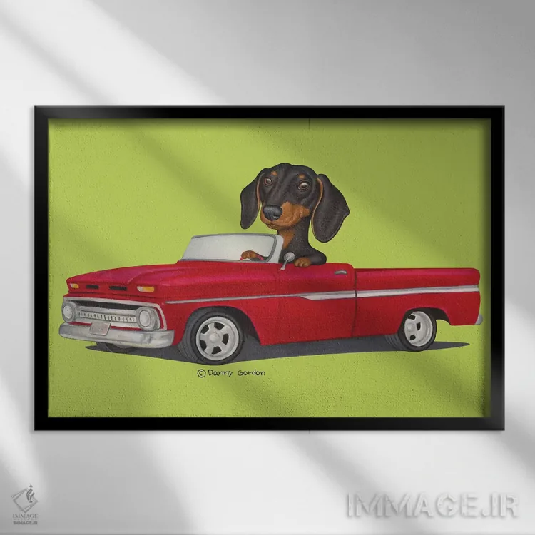 «داشهوند با کامیون قرمز و لیمویی» اثرِ «دنی گوردون» از آن کارهاییست که برای دکورهای مینیمال، یک نقطهٔ توجه میسازد؛ برای دیوار کنار میز کار انتخاب خوبیست. برای دیوار گالریوار هم گزینهٔ خوبیست.