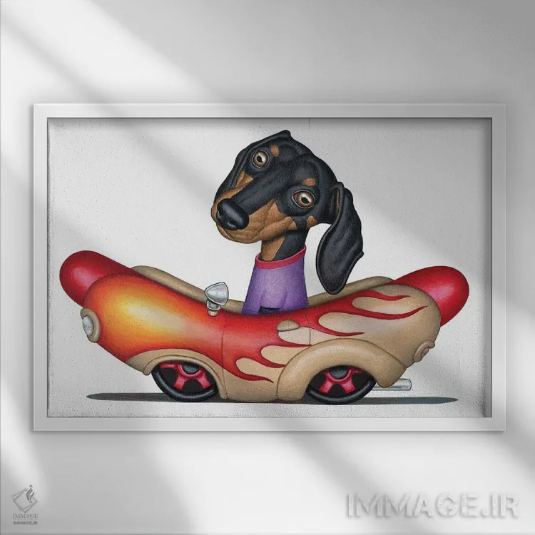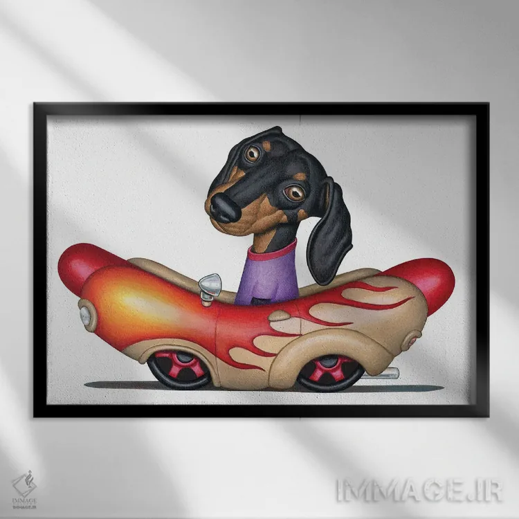 اگر به آثار حیوانات علاقه دارید، «خودروی وینر لندیس با رینگ مشکی» اثرِ «دنی گوردون» فضا را صمیمیتر و دعوتکنندهتر نشان میدهد، برای اتاق کودک (بدون لحن کودکانه) گزینهٔ مناسبیست. حسش صمیمی است، اما کیفیتش جدی و خوشپرداخت.
