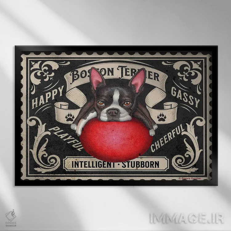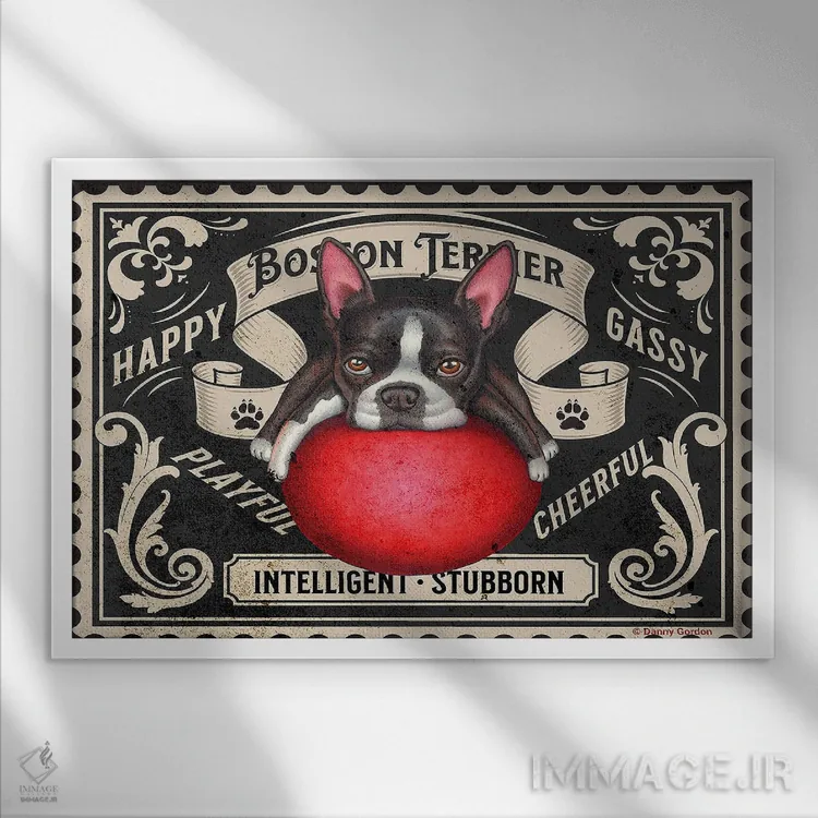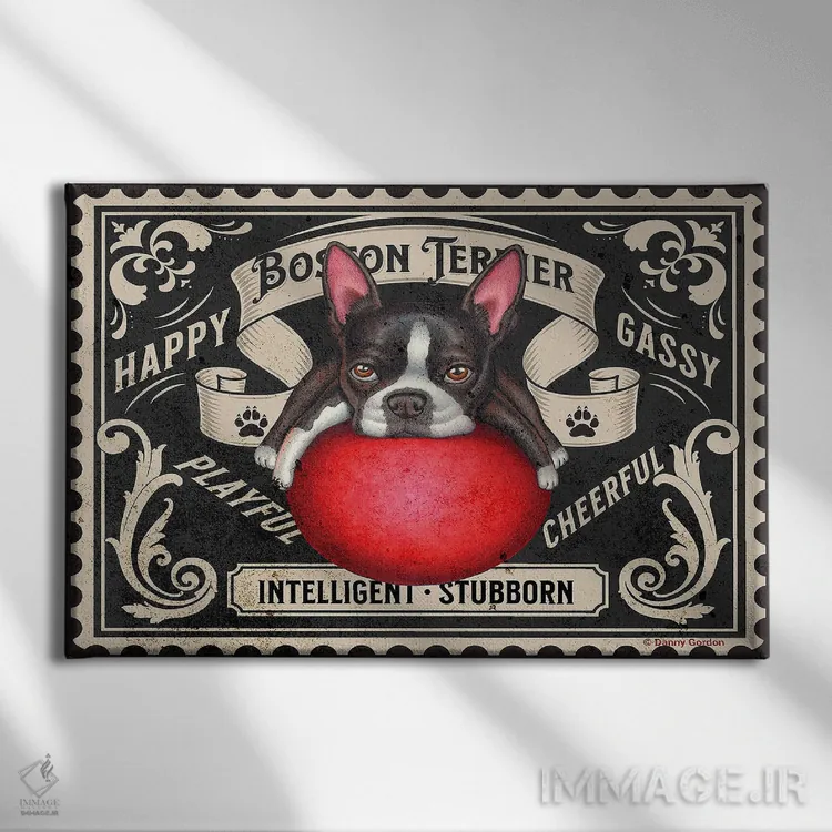 تابلو تمبر بوستون تریر با توپ قرمز اثر دنی گوردون