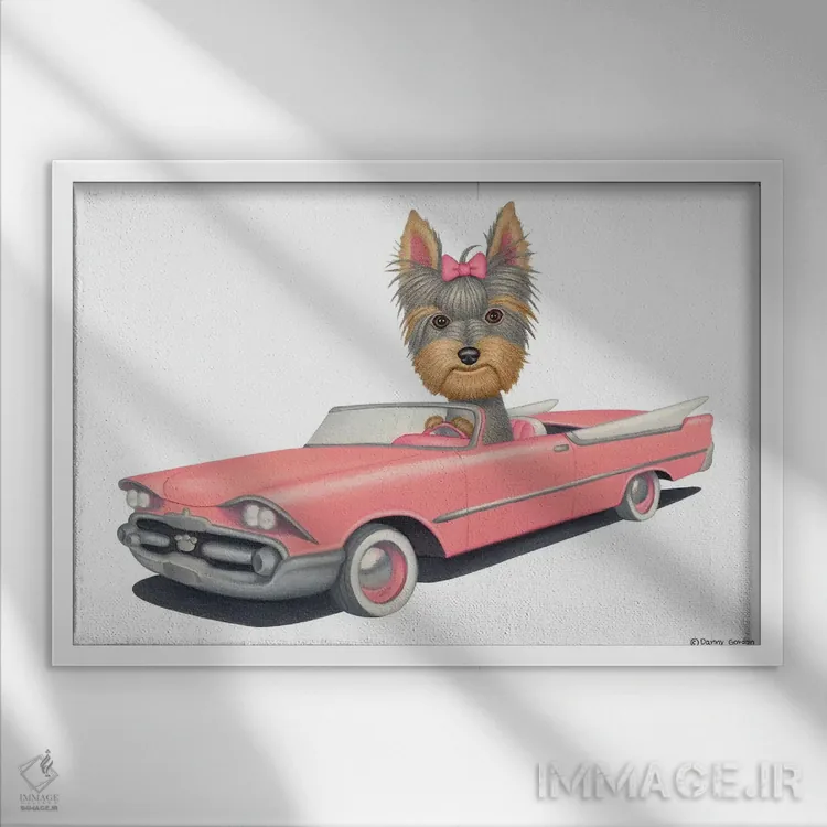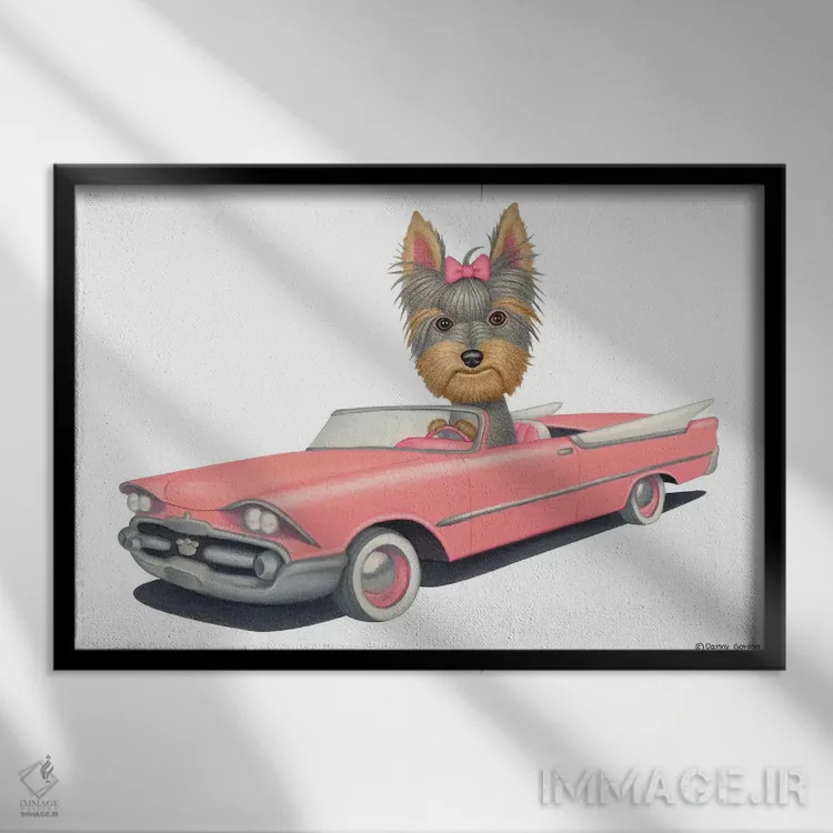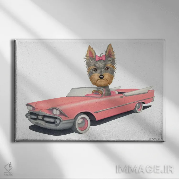 تابلو یورکشایر تریر با ماشین صورتی اثر دنی گوردون