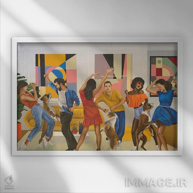 براساس پالت ترکیبی اثر، قاب بلوط روشن (چوبی) پیشنهاد اول است و استخوانی ملایم مکمل. برای سفارشهای پروژهای با ابعاد و قابهای اختصاصی با ایماژ در تماس باشید.