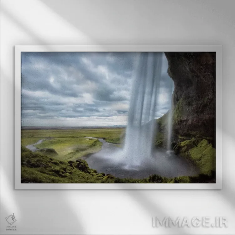 در «پشت آبشار سلیالاندزفوس (ایسلند)»، اثرِ «دنی هد» موضوعِ این اثر را با اجرای پرداختِ هنری مطرح میکند؛ برای فضاهای زنانه، لطیف یا حتی مینیمال، کاملاًً قابل چیدمان است.