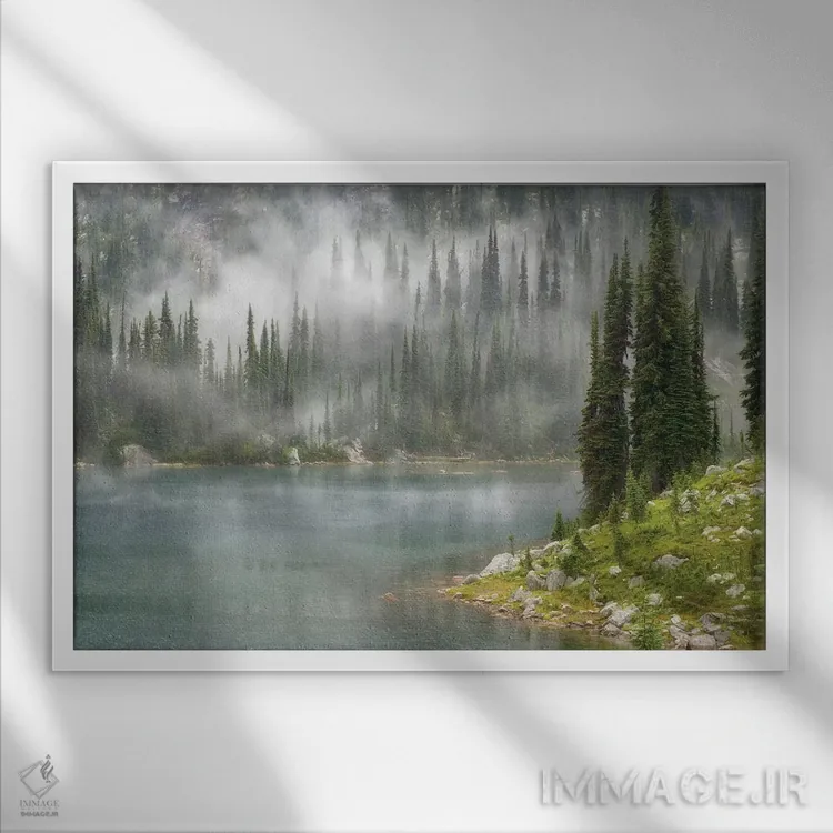 این تابلو با عنوان «مه و باران بر فراز دریاچه اِوا، پارک ملی ماونت راولستوک، بریتیش کلمبیا، کانادا» اثرِ «دان پاولسون» به دیوار، شخصیت و جهت میدهد؛ برای راهروها و ورودیهای مینیمال پیشنهاد میشود. با نور گرم یا سرد، خوانایی و وقارش را حفظ میکند.