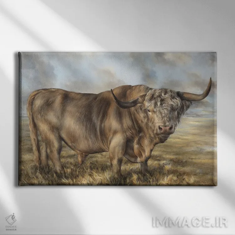 تابلو دکوراتیو گاو قهوه ای ارتفاعات اثر باورا پرژوگینا