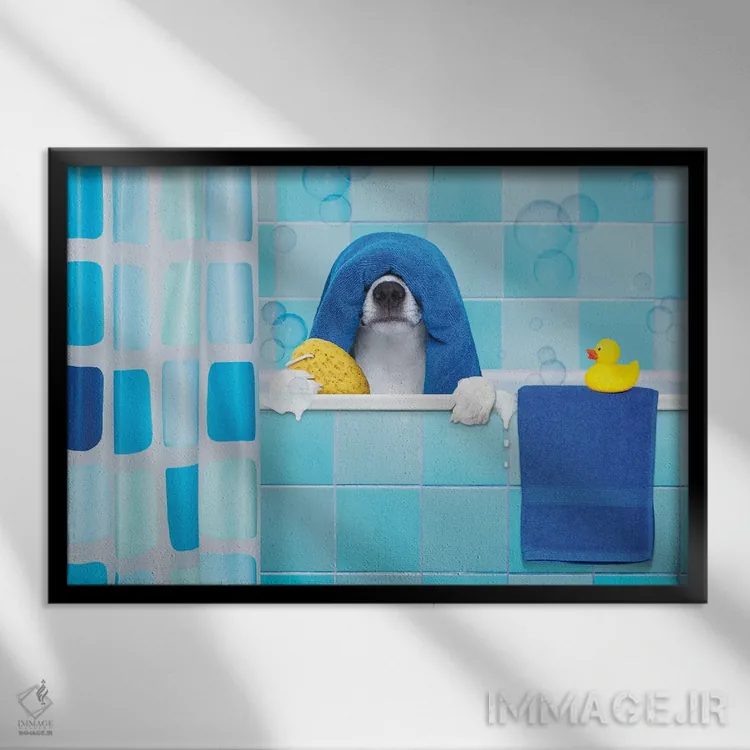 تابلو سگ در حمام I اثر دَمِدیزو - نمای قاب‌دار مشکی