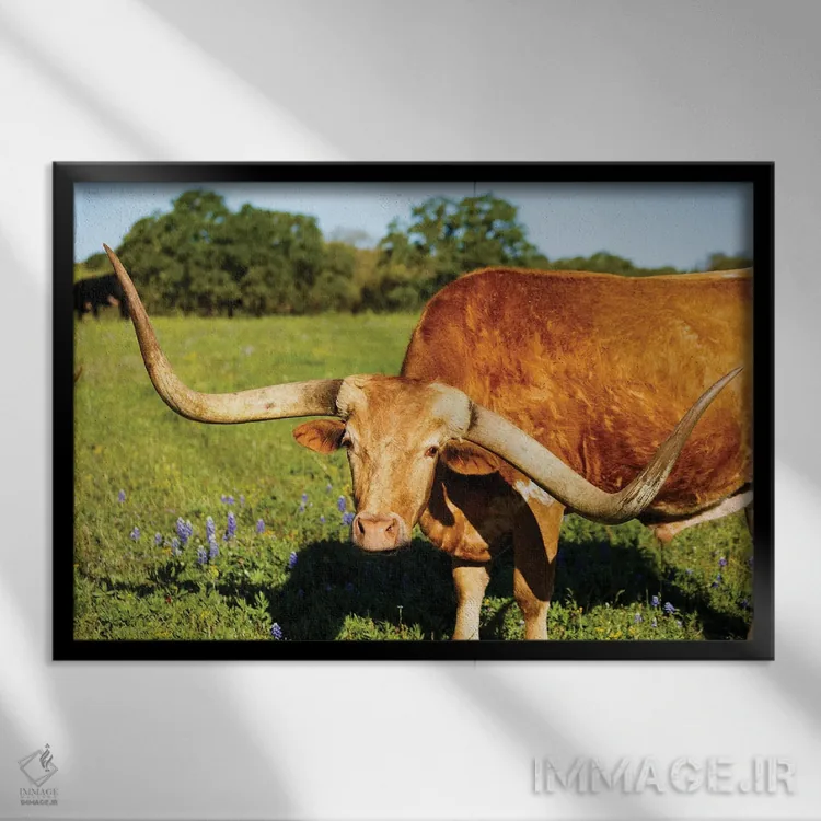 تابلو دکوراتیو گاو شاخ بلند زیبا I اثر فوتولومینیت