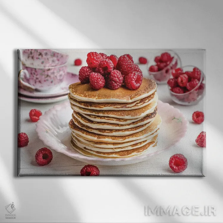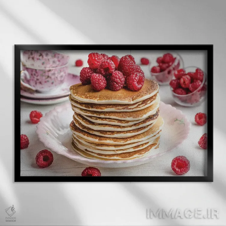 تابلو دکوراتیو یک دسته پنکیک با تمشک روی آن اثر اوا دارن