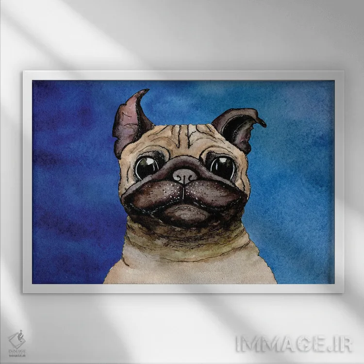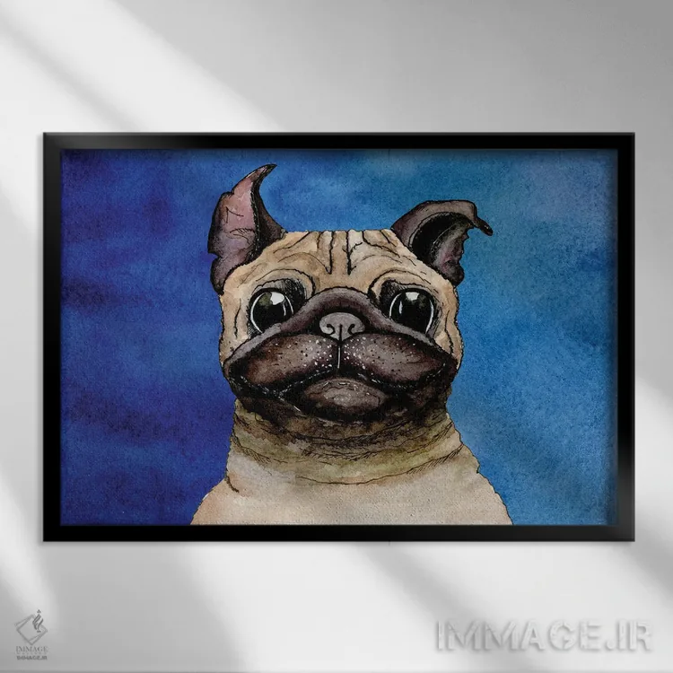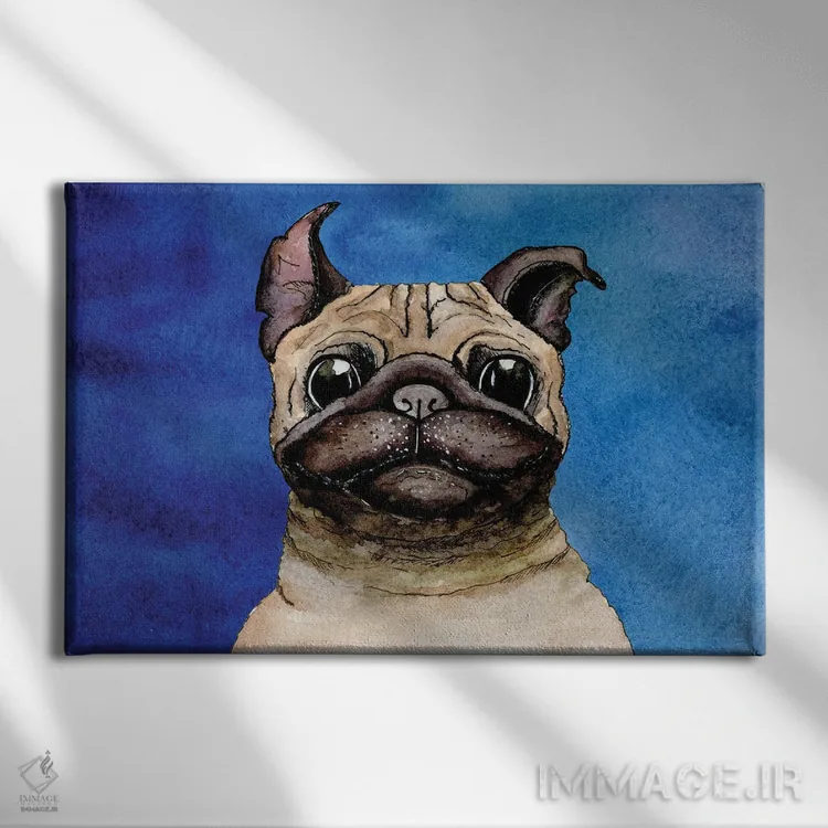 تابلو بولداگ روی زمینه آبی اثر گام۹۲ (هنرمند دیجیتال) - نمای پرسپکتیو محصول
