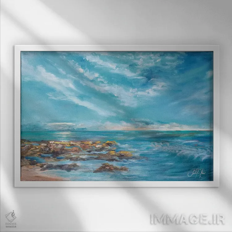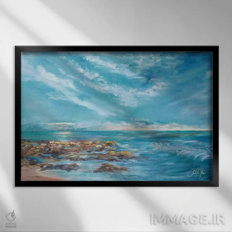 براساس پالت ترکیبی اثر، قاب تیک گرم (چوبی) پیشنهاد اول است و مشکی مات (فریم متوسط) مکمل. برای سفارشهای پروژهای با ابعاد و قابهای اختصاصی با ایماژ در تماس باشید.