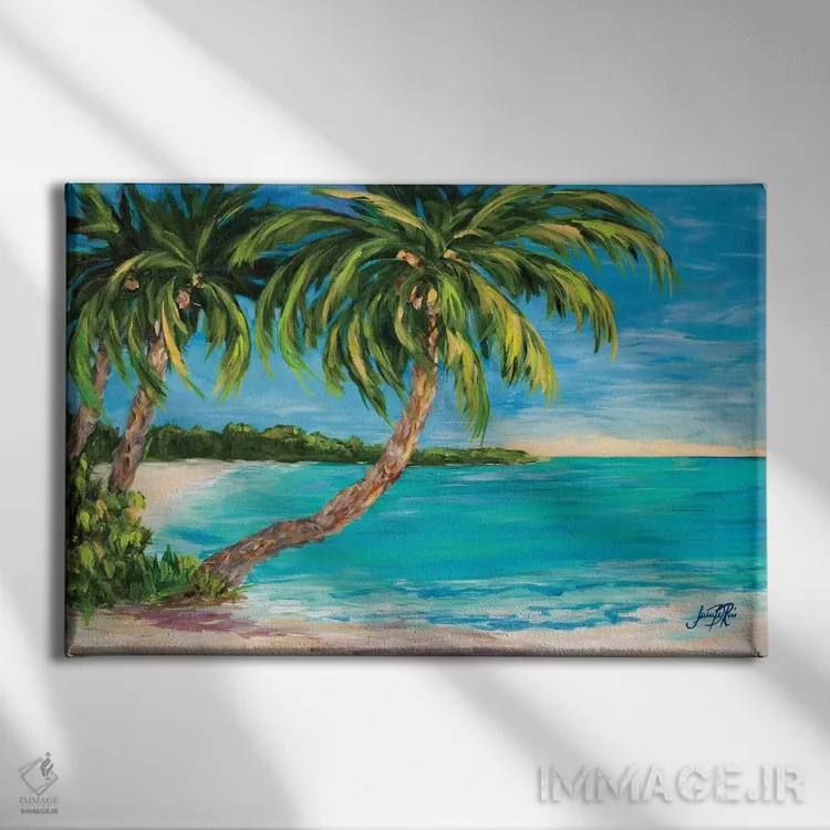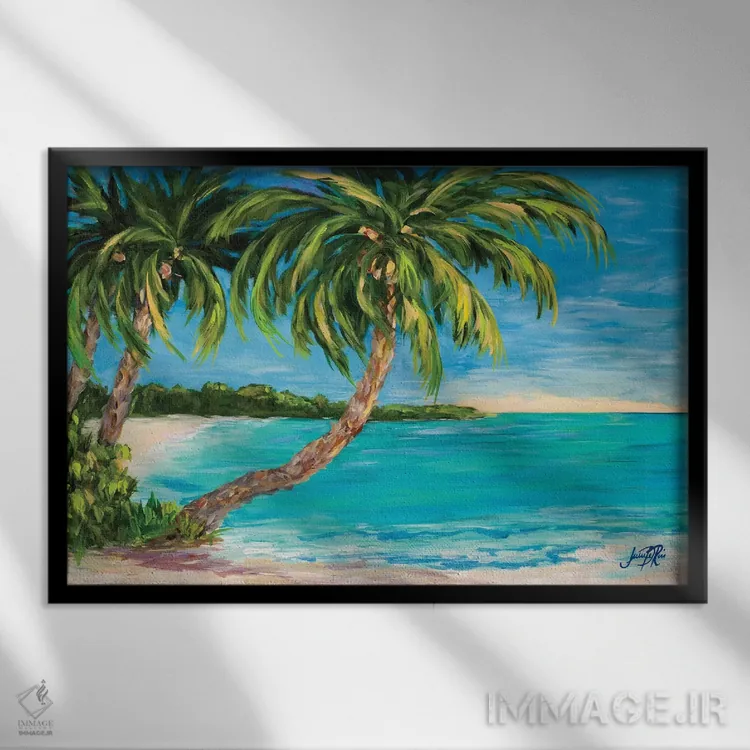 «خلیج نخل» اثرِ «جولی دریسه» با رنگوبوی ساحل و موضوعِ این اثر، برای راهرو، بالای کنسول یا دیوار شاخصِ پشت مبل انتخاب مناسبی است.