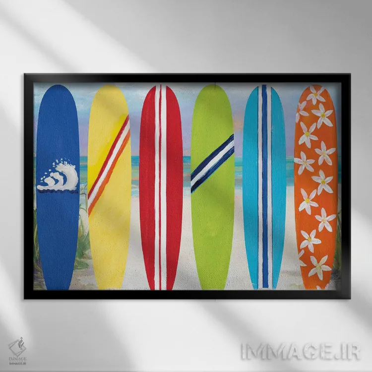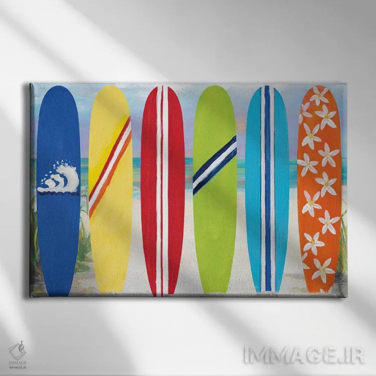 در «تختههای موجسواری در ساحل»، اثرِ «جولی دریسه» این اثر را با حس ساحلی ارائه میکند؛ برای چیدمانهای ساده و روشن، انتخابی مطمئن و هماهنگپذیر است.