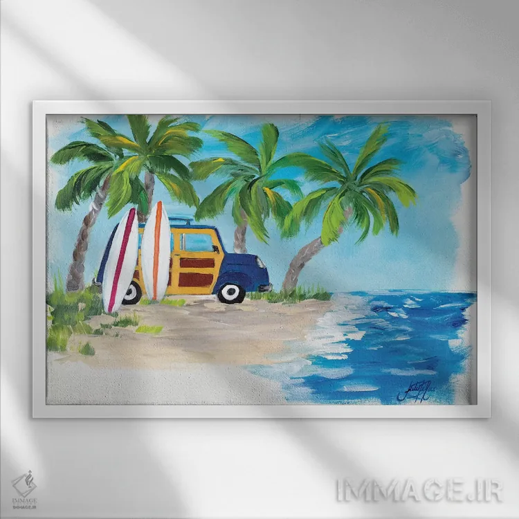 این اثرِ «جولی دریسه» در حالوهوای ساحلی، برای کنار چوب روشن و دیوارهای سفید/کرم یک انتخاب خوشنشین است؛ موضوعِ این اثر هم حسِ سفر میآورد.