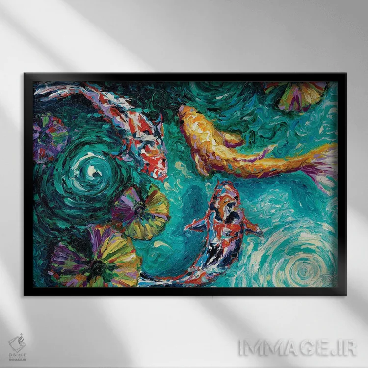 براساس پالت ترکیبی اثر، قاب تیک گرم (چوبی) پیشنهاد اول است و مشکی مات (فریم متوسط) مکمل. برای سفارشهای پروژهای با ابعاد و قابهای اختصاصی با ایماژ در تماس باشید.