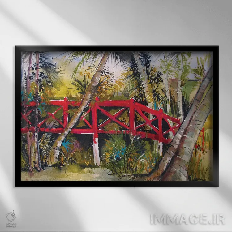 تابلو پل قرمز اثر هلن دوبروویچ - نمای قاب‌دار مشکی