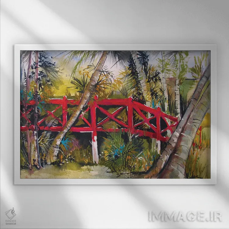 تابلو پل قرمز اثر هلن دوبروویچ - نمای قاب‌دار سفید