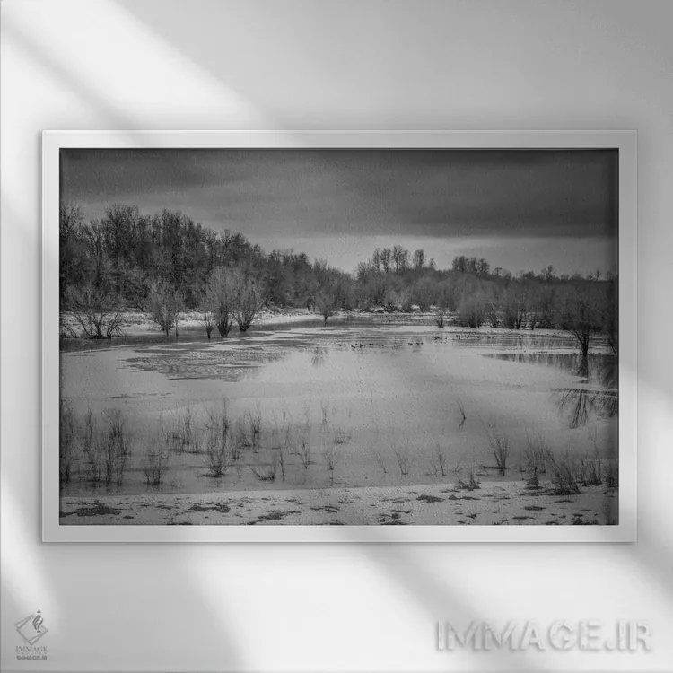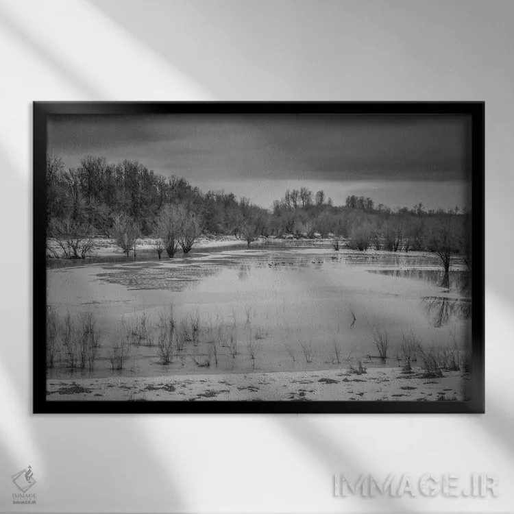 «باتلاق زمستانی ۲» اثرِ «دان شوارتز» در فضای عکاسی سیاهوسفید، روی نور و کنتراست تکیه میکند؛ موضوعِ این اثر برای دکورهای مینیمال عالی است.