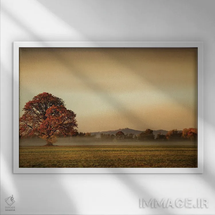 براساس پالت گرم اثر، قاب بلوط روشن (چوبی) پیشنهاد اول است و استخوانی ملایم مکمل. برای سفارشهای پروژهای با ابعاد و قابهای اختصاصی با ایماژ در تماس باشید.