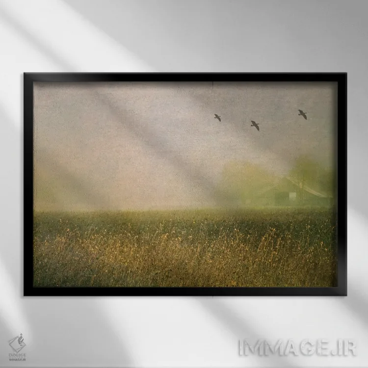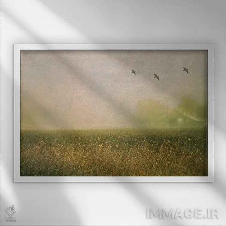 وقتی چیدمان را با دقت میچینید، «انبار مهآلود در میان گلهای آفتابگردان» اثرِ «دان شوارتز» چیدمان را از حالت پراکنده خارج میکند؛ برای کافهها و فضاهای عمومی کوچک پیشنهاد میشود. حضورش روی دیوار «مرتب» است؛ نه پر سر و صدا، نه بیاثر.