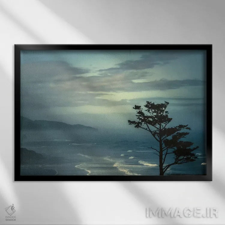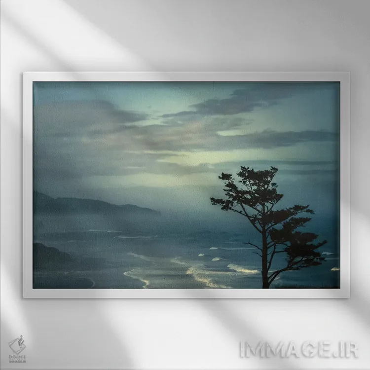 براساس پالت سرد اثر، قاب سفید مات (فریم باریک) پیشنهاد اول است و نقرهای برسخورده (متالیک) مکمل. برای سفارشهای پروژهای با ابعاد و قابهای اختصاصی با ایماژ در تماس باشید.