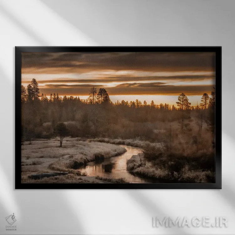 براساس پالت گرم اثر، قاب بلوط روشن (چوبی) پیشنهاد اول است و استخوانی ملایم مکمل. برای سفارشهای پروژهای با ابعاد و قابهای اختصاصی با ایماژ در تماس باشید.
