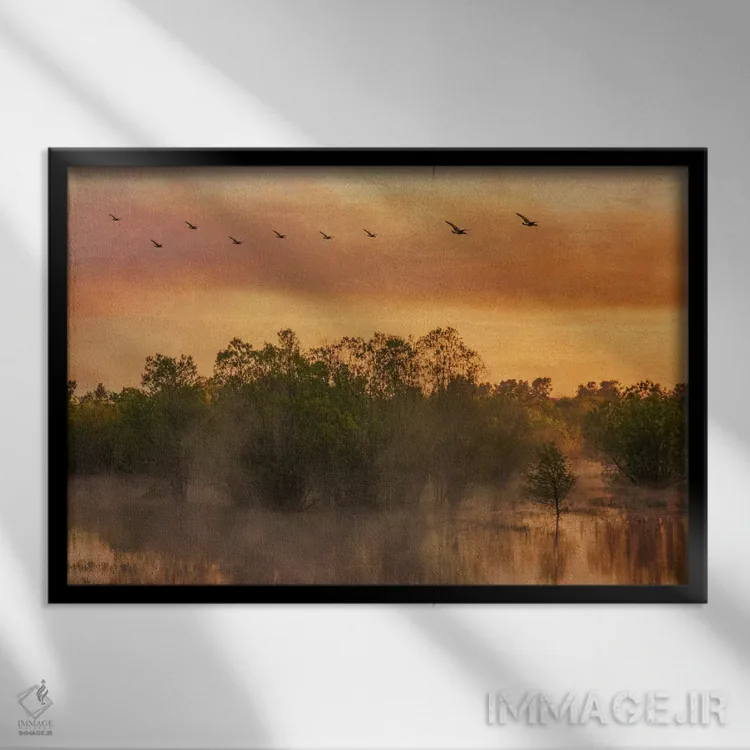 براساس پالت گرم اثر، قاب تیک گرم (چوبی) پیشنهاد اول است و مشکی مات (فریم متوسط) مکمل. برای سفارشهای پروژهای با ابعاد و قابهای اختصاصی با ایماژ در تماس باشید.